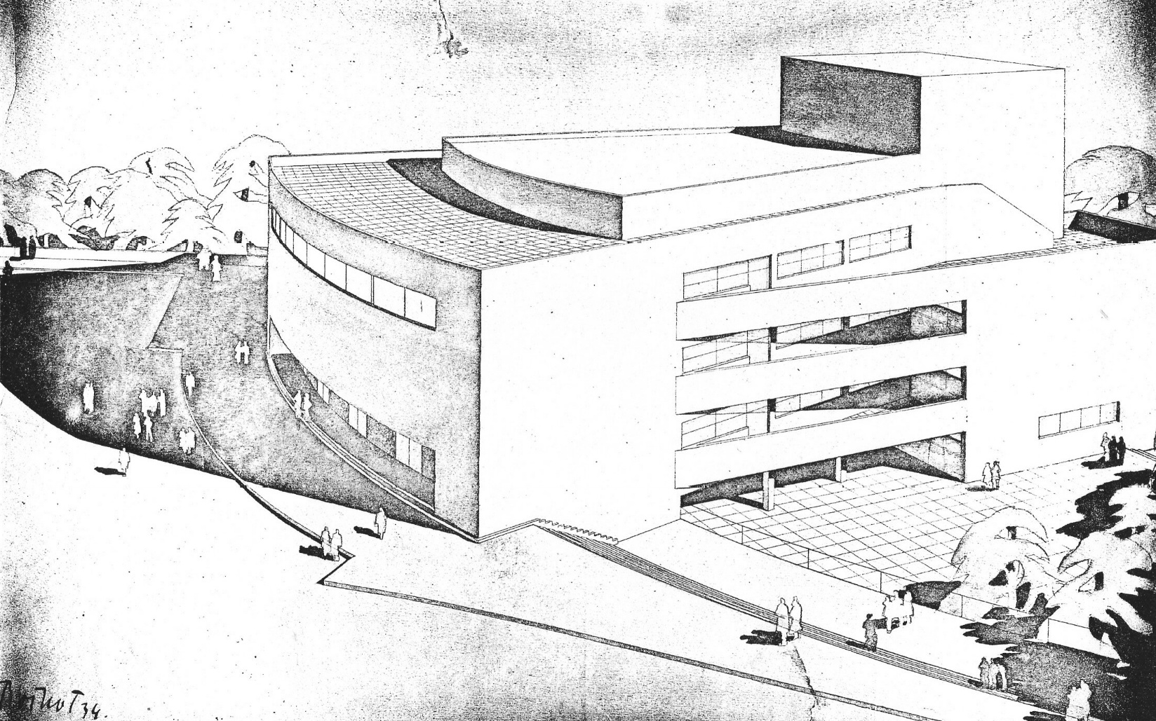 Návrh divadla v Teheránu. Realizovaný návrh divadla v Ústí nad Orlicí (1934–1935) se vyvinul ze dvou ranějších Roškotových projektů – z prvního návrhu ústeckého divadla z roku 1930 a z prvního návrhu divadla Imperial pro průmyslový komplex Škodových závodů v Teheránu z roku 1933.